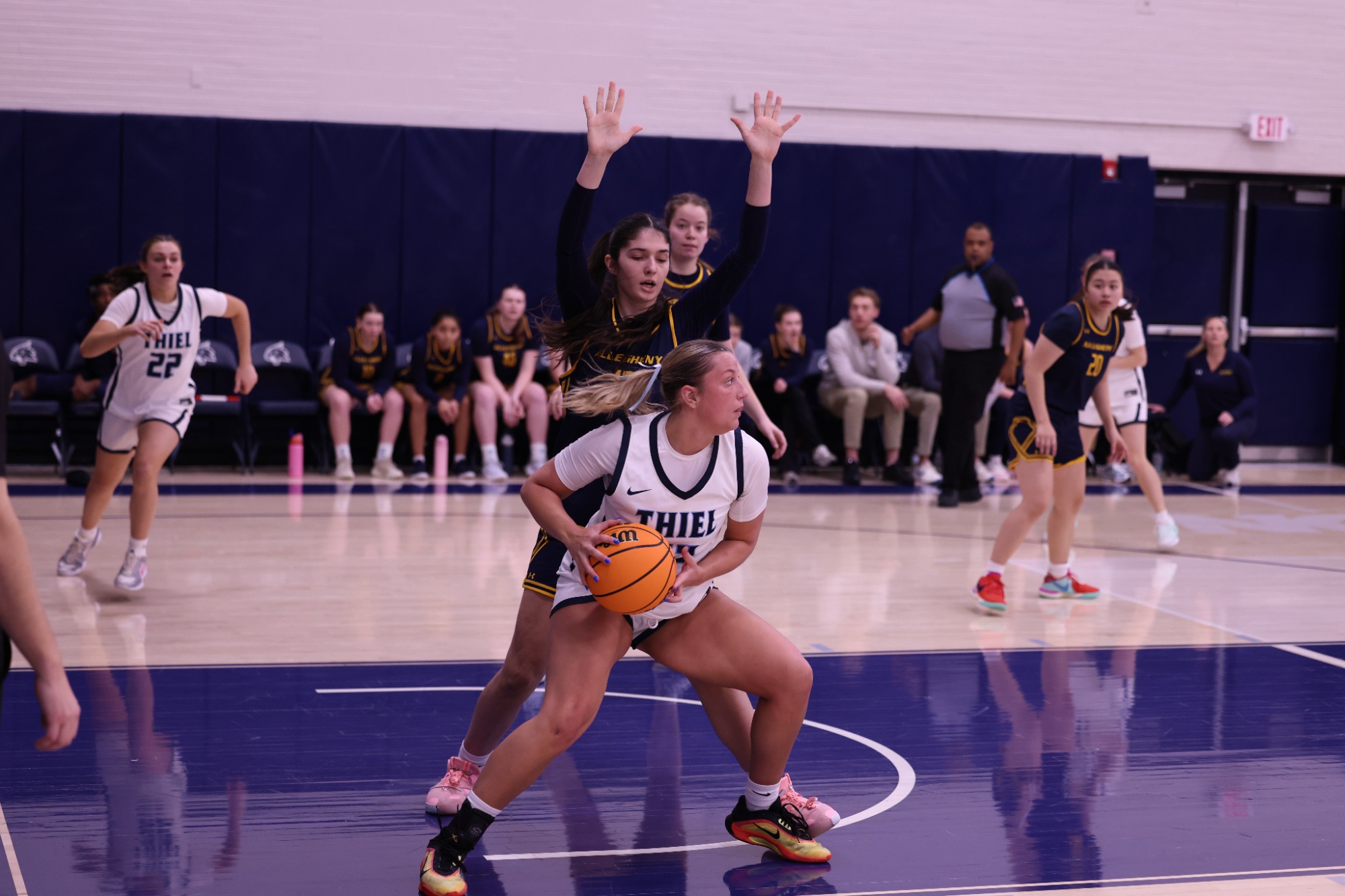 At the 4:53 media time out Geneva took the time to regroup and forced Thiel into messy turnovers to take a 13 point lead and end the half at 29-14. The Golden Tornadoes extended that cushion behind strong execution and by halftime, Geneva held a 50–32 lead.